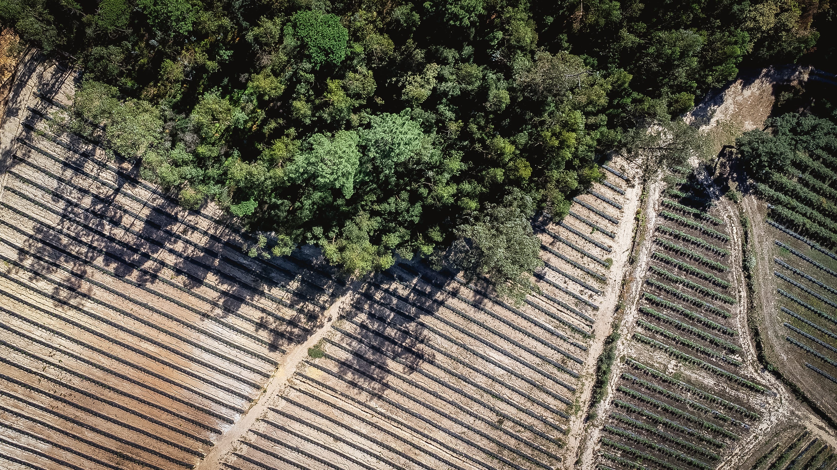 Este padrão não é exceção. Já o tínhamos visto, à escala e com outra linguagem, no país do xisto. No Douro chegou primeiro a promessa de modernização e logo a seguir as máquinas. As encostas abriram-se a ferro e força do petróleo. Caíram muros antigos, ergueram-se socalcos novos, alinhados para a eficiência da vinha e da auditoria. O desenho parecia vencer o relevo. A paisagem ficou de postal que seduz a visão urbana do campo. Por trás do postal, a conta não fechou para todos. A mecanização trouxe escala e velocidade, mas também encareceu o ciclo e estreitou a diversidade. Onde havia mosaico de uvas, oliveiras, amendoeiras e matos que seguravam o chão, ficou uma monocultura que exige trato permanente. E convém lembrar: a videira, no seu papel ecológico, é uma trepadeira de floresta, que procura suporte noutras árvores, meia-sombra e variação vertical. Na vinha convencional, torna-se uma trepadeira escravizada, esticada em arames, podada para caber no molde, forçada a maturações uniformes e picos de produção, mantida em stress e intolerância constantes, mais frágil, vergada aos novos paladares sofisticados.