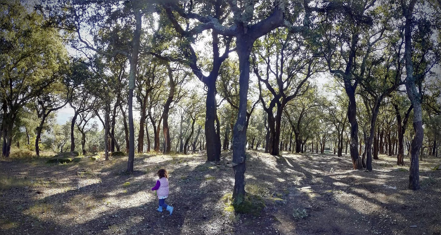 O montado, esse, é uma fotografia parada a meio da escadaria. Existe porque é limpo, gerido, podado, descortiçado, pastoreado. Este não é o destino do sobreiro mas sim um arranjo humano que congela o sistema num ponto que dá rendimento previsível. Eternizar esse arranjo é escolher a renda certa e adiar indefinidamente a abundância que viria depois se o sistema não fosse travado.